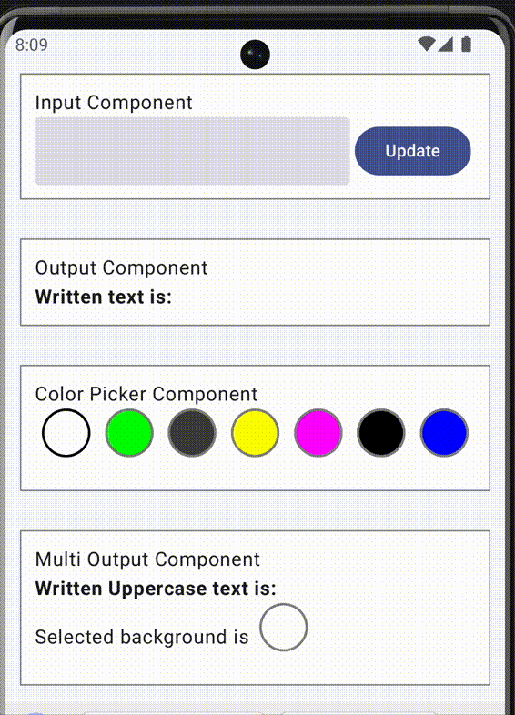 // Inside a TransformeronEffect<InputEffect.InputUpdate> { effect -> holder.update { it.copy(writtenUppercaseText = effect.value.uppercase()) } // We are suspending on compute val result = compute(OutputTransformer.outputCalculationContract) holder.update { it.copy(writtenUppercaseText = it.writtenUppercaseText + " ${result?.result}") }}// ... Another Transformer CodeonEffect<InputEffect.InputUpdate> { effect -> holder.update { it.copy(outputText = effect.value) } delay(3.seconds) // Here getData is a suspending function val selectedColor = getData(ColorPickerTransformer.holderContract) selectedColor ?: return@onEffect // ... more code}We can expect that the function we use will suspend the current execution if it takes a while to get the data. Making all functions support suspension gives us soft synchronization points and allows us to mix network calls and services if necessary.
