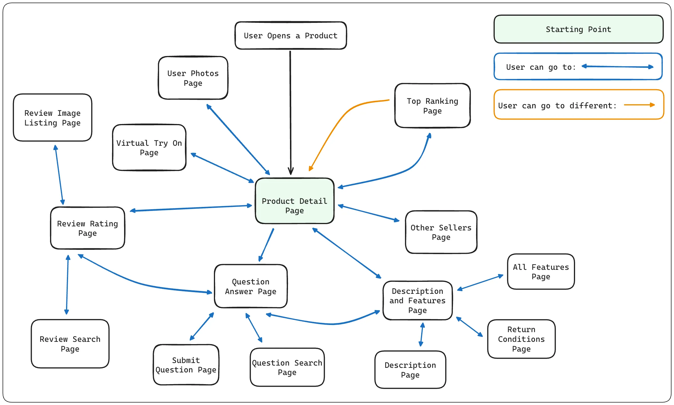 In its early stages, the Product Detail Page Screen contained several distinct components presenting relevant product information. Key components included a product image slider, seller and product info areas, sliders for user reviews and questions, displays of similar products, and a feedback collection area. Some components also featured horizontal sliders. To accommodate these elements, the screen was built using a NestedScrollView.