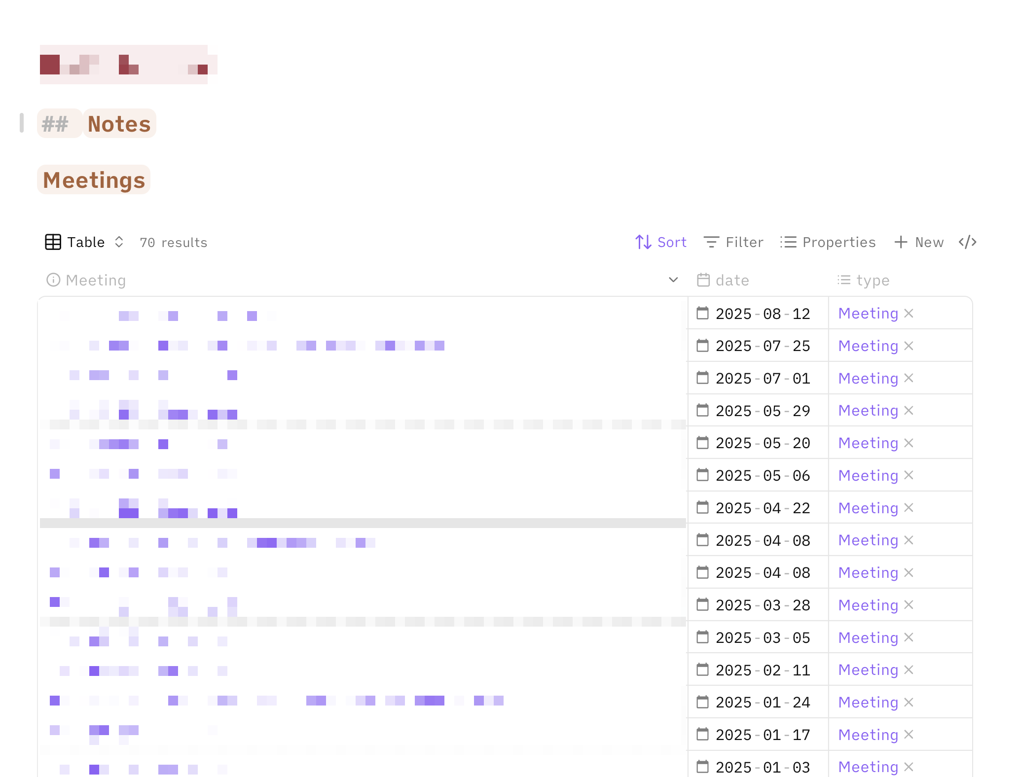 Keeping track of the important meetings using just notes is also relatively easy. There are downsides to what information can you keep in a single markdown document. But they can just contain the relevant excel link or other external information if you want to.