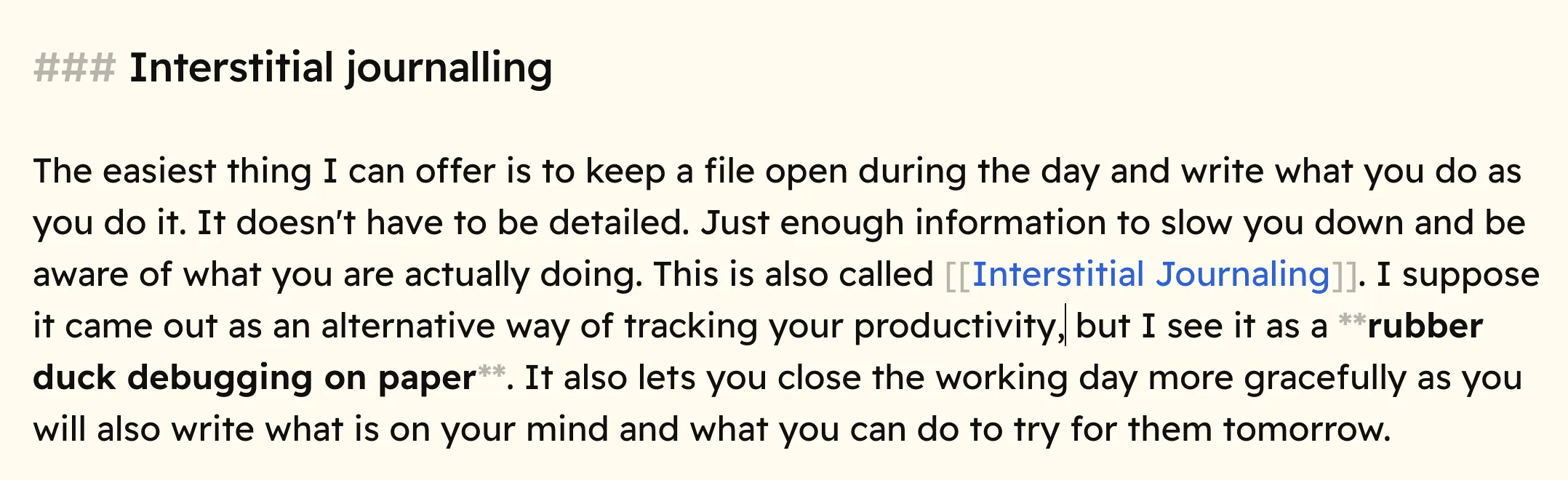 When you set a direction for your career, there are certain metrics you need to keep tabs on and improve upon. You want to remember your achievements to direct them towards your goals. Some of these achievements are quite direct and noticeable. Others are more obscure and harder to notice. Especially after time has passed and you want to remember them. So the antidote is… yes, write those down too. This time, we are slowing down our work life to notice these things. You might not notice those moments during the hectic work hours. Interstitial Journaling might also help curate those.